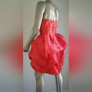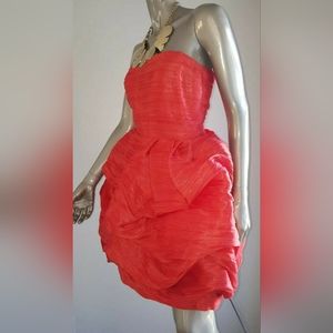 °$6,000 OSCAR DE LA RENTA STUNNING SILK CORAL RED ROSE PLEADED RUNWAY DRESS 6, 8