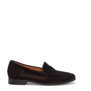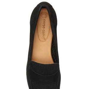 Corso Como Black Suede Penny Loafer Flats Women's Size 6 Perforated Almond Toe