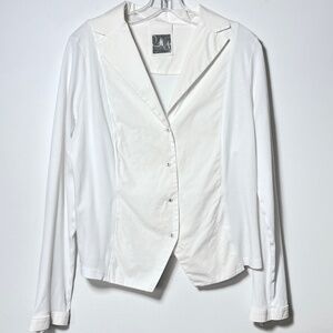 Annette Gortz Annette Görtz Giga Oversized Belted Button down Tunic Shirtdress. Rare opportunity to own a sample form this German designer. Button Front Closure, belted ties at the waist Three Quarter Sleeves Buttoned Cuffs, Side buttons allow you to fold up the bottom corners in a layered drape origami style. 100% Ramie Made in Germany Size 38 fits Medium approx 20.5" flat across underarms, 39" long Dark Neutral color is Black Blue Gray. Wear as a dress tunic or jacket. Since this is a designer sample it is literally One of a Kind.