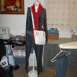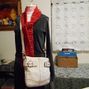 Scarf Knit Darker Red with Gold Accents - Super Cute and Warm