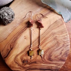♡ Materials: peace signs charms, beach stone beads, gold tone nickel free hypoallergenic hooks