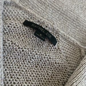 Pre-loved. Good condition. Pictures provided of minor tugs. Women’s Rachel Zoe Cardigan. Color tan. Size S. Super cute!