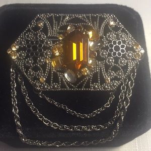 New Lia Sophia Silver & Amber Crystals Brooch, Vintage Vibe, Beautiful and striking!