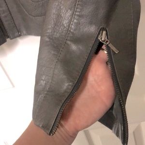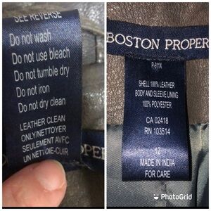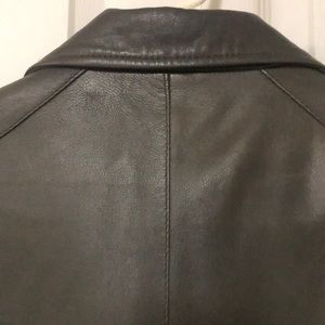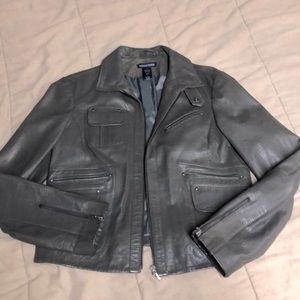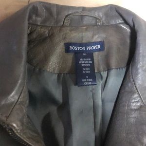 Vintage Genuine leather grey sz12 crop jacket 6 pockets By Boston Proper. Falls above waist. Zippers all work. Fully lined. Vintage item shows signs of wear, well broken-in leather in great shape! Zippers open at sleeve cuffs. Jacket has lingering scent of original owner’s feminine perfume. All 6 pockets are real!