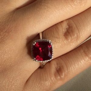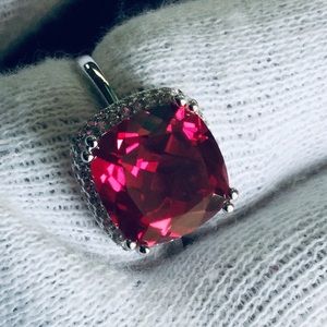 14K White Gold/Over 925 Sterling Silver Gems Ruby