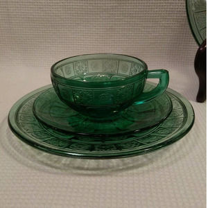 Jeannette Rare Doric and Pansy set of ultramarine depression glass children’s dishes "Pretty Polly Playset" 1937 - 1938