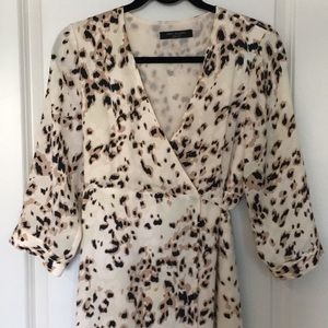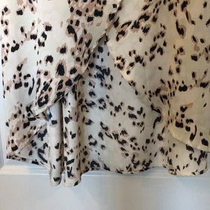 Knot Sisters high-low with slit wrap dress with beige, tan and brown cheetah print