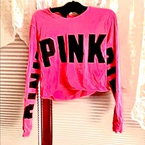 Size XS. Long sleeve pink cropped tee shirt by Victoria’s Secret PINk