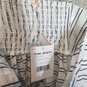 Free People new with tags Easy Breezy striped midi dress. Smocking on the back. Has pockets. Super flowy fit and flare silhouette. Tie accent at the bust with beading. Adjustable straps. Size small. Perfect for summer! Style OB1137685