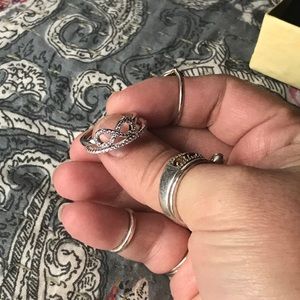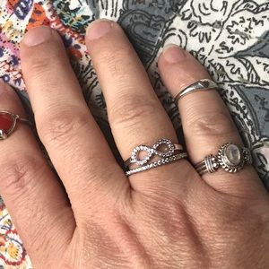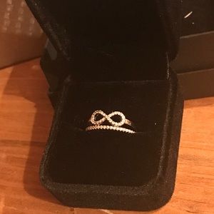 gorgeous 925 silver and diamond set for that special girl who is looking for something truly unique - this set has lots of sparkle - excellent new condition- lovely eternity band coupled with gorgeous infinity engagement or promise ring (also nice right hand set)- retails 798. - will not tarnish - from reliable seller - from clean non smoking home - offers welcome - sold in lovely gift box for gifting
