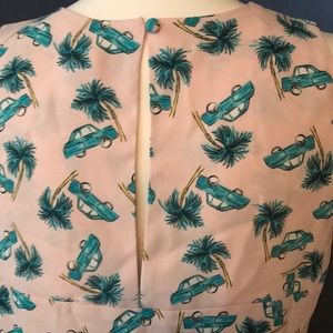Lucy & Laurel pink/turquoise dress, size XL. I think of this as the Cuba dress because of the vintage cars and palm trees.