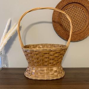 Vintage Wicker Rattan Plant Stand Boho Basket