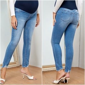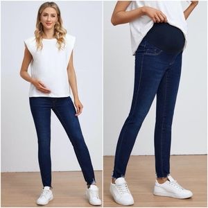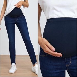 MATERNITY distressed denim skinny jeans dark wash