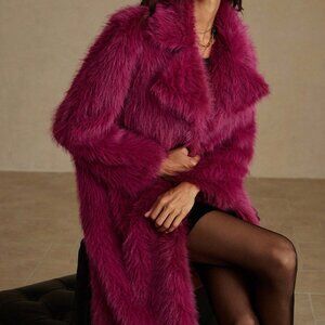 👋🚨FLASH SALE 20%🚨 - Pink Metallic Fur Trim Coat Long Jacket Winter