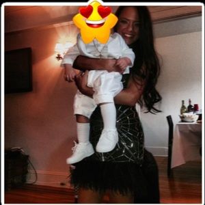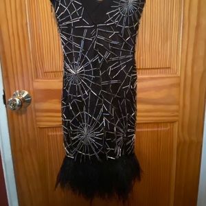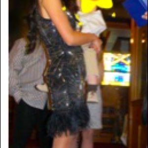 Get the attention you deserve in this shimmery sequin dress, faux fur dress! V-cut style back/front. Hidden zip on side. Worn only once. Excellent condition.