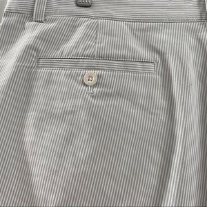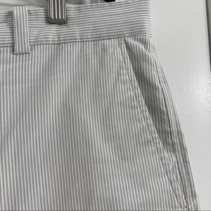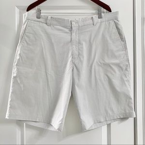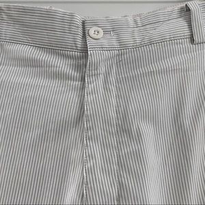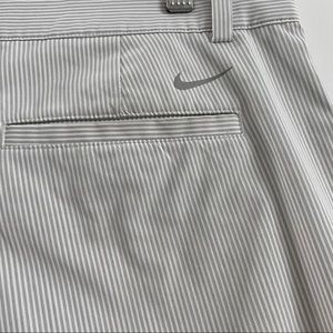 Great condition pair of white and gray striped Nike Golf Tour Performance shorts. Front and back pockets. Button and zipper closure. DriFit technology. Size 38 waist. Inseam approximately 10.5”. Rise approximately 12”.