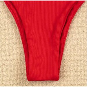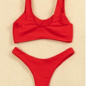 Scoop neck bikini with cut out details. Wireless bra cup with removable pads.