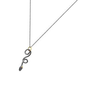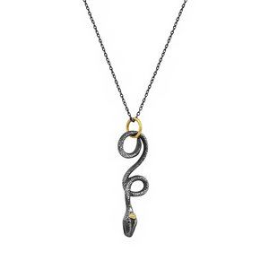 0.01ct Dia. 925 Silver & 24K Gold Snake Necklace