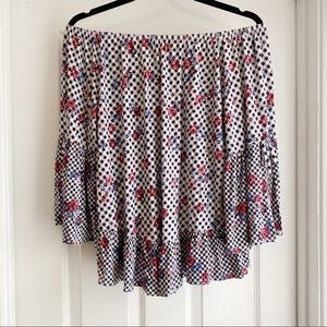 Style & Co Gingham Floral Off Shoulder Top Medium
