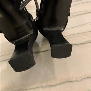 Excellent condition heels. Hardly worn. In original box with dust bag. Only wore a few times for formal events. Very little wear on the heels. 3.5” high. I wear an 8 but needed 8.5 because of the pointed front. No concern with them being too big because the straps hold your foot in the shoe.