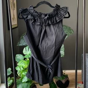 This black ruffled neck blouse is in excellent condition. SiE medium. Always dry cleaned.