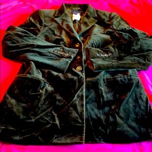 Gorgeous forest green, button down velvet blazer from Italian luxury brand Piazza Sempione. Two pockets and green lining. Amazing piece.