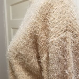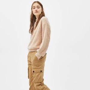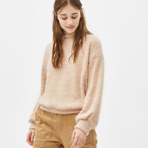 Bershka furry soft long sleeve chenille sweater. Slight mock neck style in a peachy pink color. 100% polyester. NWT.