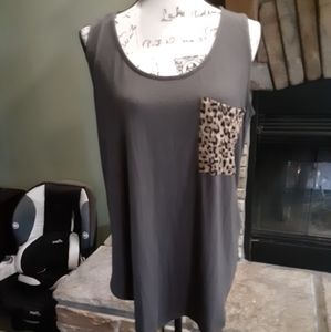 Zenana leopard pocket ash colored size XL tank top. Material 57% polyester, 38 rayon, and 5% spandex. Very cute buttery feel, and stretchy tank. From a pet and smoke free home. I also bundle for cheaper just let me know.