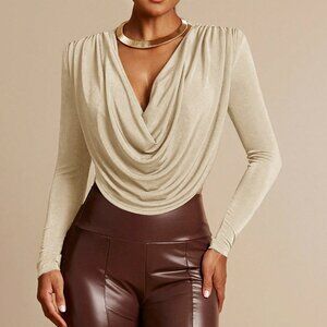 Complete with a pair of high. Rise palazzo pants featuring a pleated waist, slant front pockets, and a concealed back zip closure..