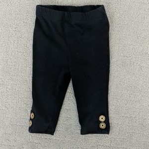 Frilly black top with gold polka dots and matching black leggings with gold buttons. My little girl loved twirling and paying with the top layers. Stretchy, comfortable material makes this a practical and stylish outfit for baby girl. Some wash wear on the gold lettering.