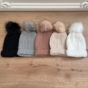 WOW these are stunning! And extremely well made. Non shedding, non itchy, super soft fabric with a faux fur pompom. Ribbed knit.