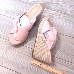 (60-3695) Fashare Womens Slip on Wedge Sandals Slides Bow Tie Sz 6.5