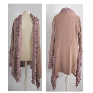 Long dress with a rounded neckline. Long sleeves and a buttoned opening at the back.