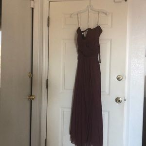 Only worn once for a wedding. In great condition! There are multifunctional straps that hang down that can convert the top to be a halter or it can just be strapless or it can be tied into other styles.