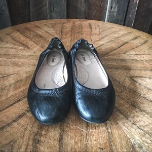 L.L. Bean black leather ballet flats. Leather is very soft and comfy.