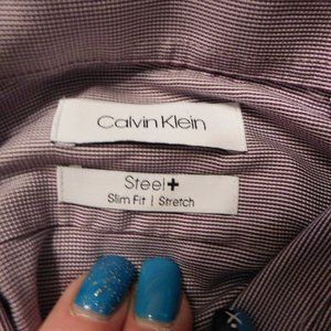 Calvin Klein Men's Dress Shirt Purple 18. Very thin purple and white striped.