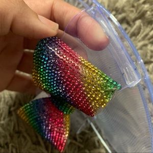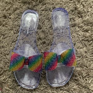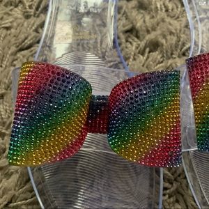 Brand new. Never used. Purchased from Miss Lola. Please note that the bows have rhinestone imperfections. They came shipped to me this way.