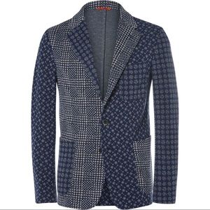 Blue SlimFit patchwork Jacquard cotton blend blazer