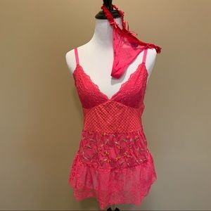 Victoria’s Secret vintage y2k floral embroidered patchwork polka dot lace lingerie babydoll - size medium