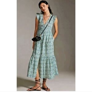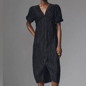 From anthropologie . Cotton blend, jewel neck, tie at waist. If you want to take a couple inches off your waistline, this is the dress for you. You could wear it with a white tee shirt until the weather is warmer. This is so cute. The REGAT. The size 2 doesn't have tags, but in great condition.