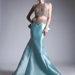 NAVY GLITTER OMBRE LAYERED BALL GOWN CDCB053