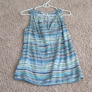 Women's sleeveless striped shirt. Stipe colors include, but are not limited to: blue, purple, green, lime green, orange, tan, cream
