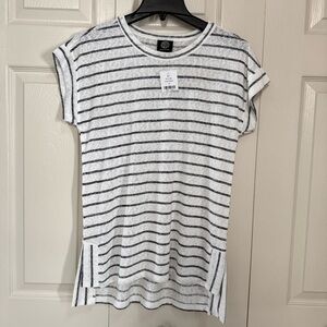 No signs of wear, except pants were stored with hems cuffed. Cuff creases will come out in wash.