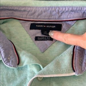 🎉🎉🎉HOST PICK @byshah_closet Men’s Style Party 🎉🎉🎉Super soft 100% cotton polo shire in pale marled green color. 2 button closure at neck. Venting at bottom hem. Hilfiger logo on front. Reinforced hem at sleeves. Just a nice casual shirt! Measurements (approx)