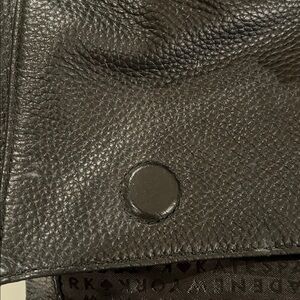 Pebbled leather in black. Very roomy bag perfect for travel or an everyday tote. Gold tone hardware. Comes with long shoulder strap. Large interior pocket and full length zip pocket that folds over the front. This may be the Brighton bag.