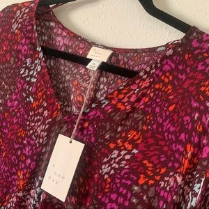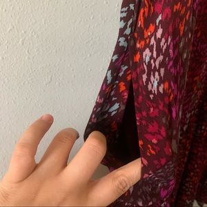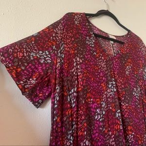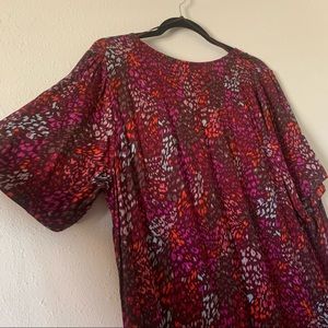 NWT A New Day Burgundy Colorful print dress size X-Large. It has short sleeves, v-neckline, side pockets, and a ruffle hem. It's super comfortable and stylish. Can be worn with sandals, heels, or sneakers.