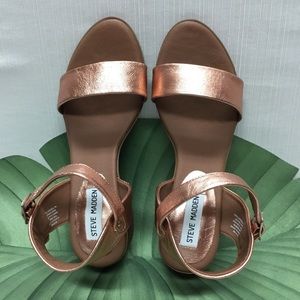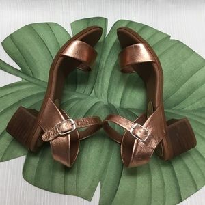 I Ship Fast. New, So Striking Steve Madden Golden Bronze Hills. Leather Upper. Synthetic Lining. Rubber Soles. Block Heels-2” Ht. Size 7M. Excellent Condition.