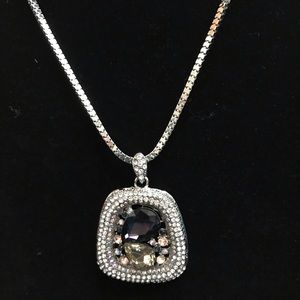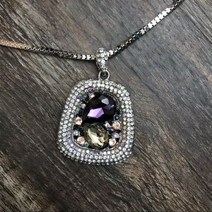 Silver toned multi stones pendant 31” necklace