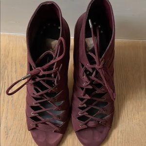 Worn only a few times. Beautiful Burgundy Suede. Fits true to size. 4” heel.