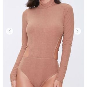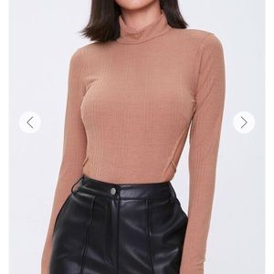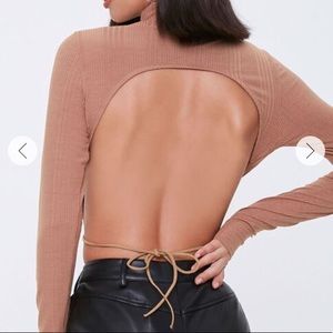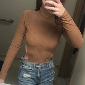Mocha Brown Backless Mockneck Long Sleeve Bodysuit
